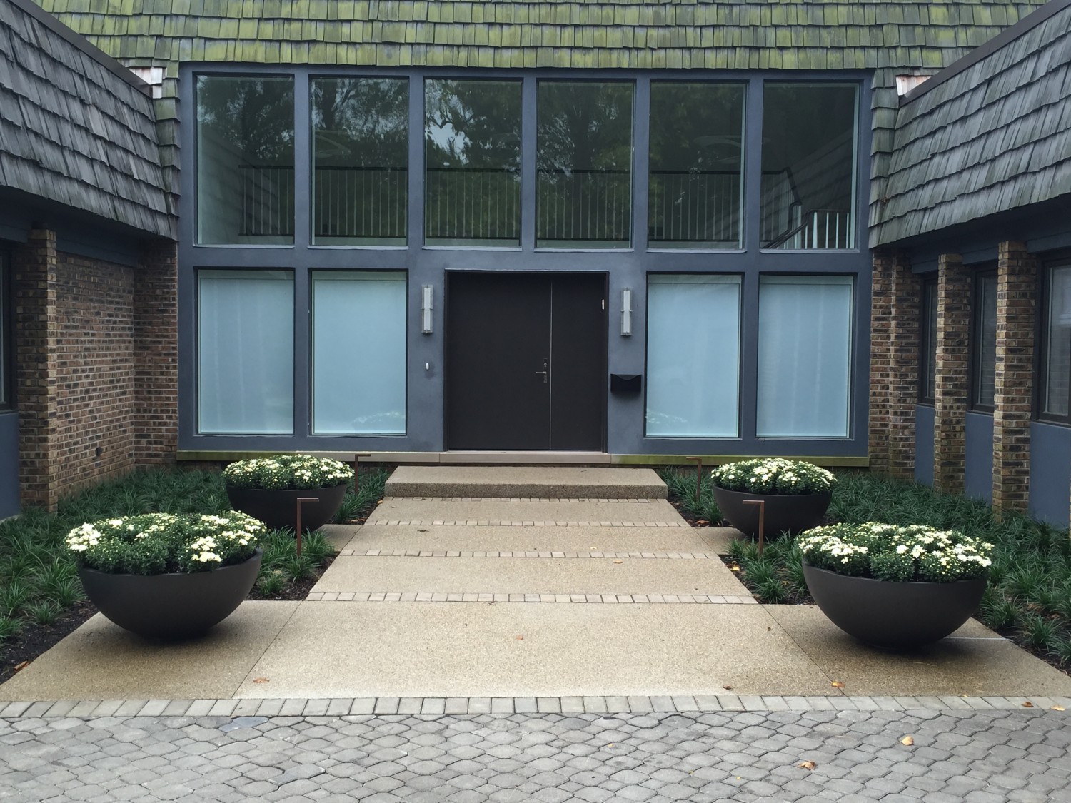 Hamilton Lakes Business Park – Exposed aggregate walk with planter